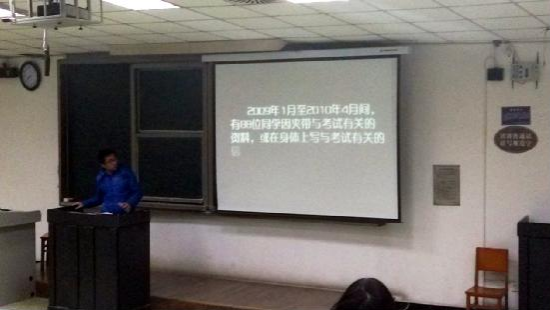 各班班长特别对历次期末考试的舞弊行为作出了详细分析。然后大家各抒己见,纷纷表达了自己对考试作弊的看法并阐述了其危害的严重性。
