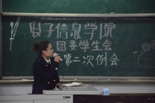2014年12月7日,电子信息学院团委学生会第二次例会在江安校区综合楼C座304教室如期召开。参与本次活动的有电子信息学院辅导员陈林老师、团委学生会副书记全婷婷同学、团委学生会执行主席耿子乔同学、执行副主席潘岳镭同学、执行副主席徐峰同学。