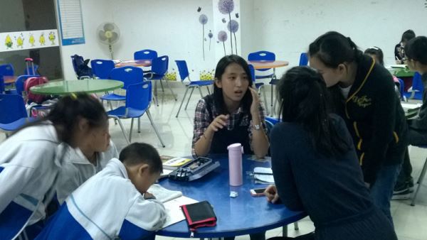 下午四点半,志愿者们到达社区。此时大部分孩子们已经在座位上坐好并拿出了作业。志愿者们进行了简单的分工,每个人负责辅导一部分孩子。孩子们认真地做着作业,遇到不会的就及时进行询问,志愿者们也都十分热情和认真地帮他们解决问题。孩子们在一种轻松愉悦的气氛中完成了做作业,而后在志愿者们的帮助下进行了听写,顺利完成了今天的学习任务。完成作业的孩子们在等待家长接送的时间里,便和志愿者们展开了聊天。志愿者和孩子们热情地交谈,彼此之间也更加熟悉。18点10分,送走孩子们之后,志愿者们也离开了社区。