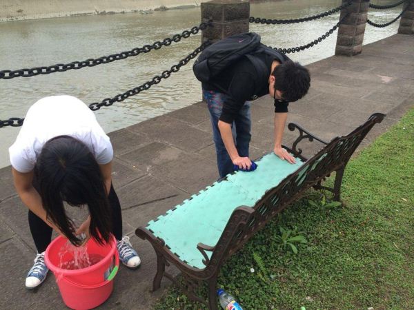 下午5点,六名志愿者们在江安河边集合,随后提着水桶去一教打水。考虑到河两边都有座椅,所以将志愿者分成了两组,分别负责河的一边。6点,江安河两边的座椅全部被擦完,志愿者们又把目标转向了图书馆旁的椅子。其间,有些椅子上有同学在休息,志愿者也不便去打扰他们,待他们走后,又从新回去擦洗。水桶很重,但男生们都积极地去提它们,抹布很脏,但女生们也主动地去清洗它们。擦座椅很累,但志愿者们耐心仔细地擦了一个又一个。最终,于7点,图书馆旁边的座椅也被擦完,活动顺利完成。