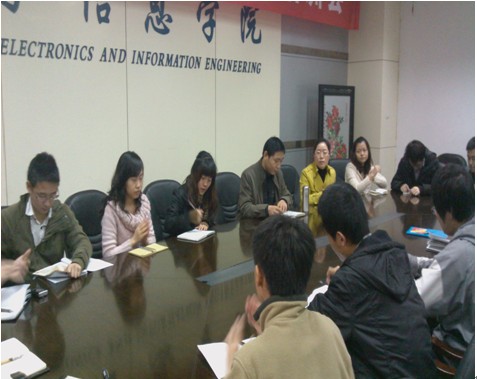 何惠老师担任主持人。会中,陈笃海副书记作了重要讲话。陈书记指出:要将本学院的学生工作首先从制度上进行规范,建立完整的团支部、党支部。整合资源,提高工作效率。学生干部在工作中要树立品牌意识,以便配合研工部的活动项目制,从而推动本院工作进展。电子信息学院研分会已经连续4年获得校十佳研分会,但我们不能简单地就把争取校十佳研分会作为工作的目的,要结合本学院实际情况,以本学院的工作思路作为研会工作的指挥棒,切实为同学服务,打造服务同学、培养同学综合素质的平台。