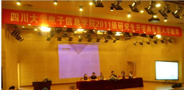 9月2日下午4:00,best365中国官方网站电子信息学院2011级研究生开学典礼暨入学教育在文华活动中心二楼音乐厅如期举行。党委书记蒋斌、副院长冯国英教授、党委副书记陈笃海老师、工会主席熊淑华教授、工会副书记张彬教授、导师代表王琼华教授、何惠老师以及赖华老师等出席了本次典礼。