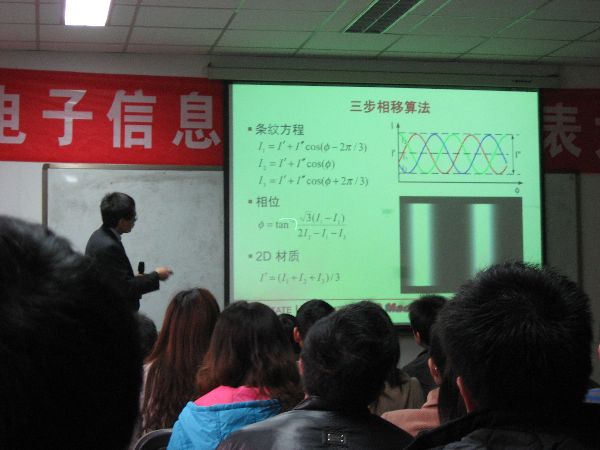 2011年4月17日上午8:30,由美国衣阿华州立大学副教授张松主讲的学术报告在基础教学楼A303准时开始。本次学术沙龙的讲座是关于“超高速高分辨率三维测量技术” (Superfast High-resolution 3D Shape Measurement Techniques )。主讲人张松博士2000年毕业于中国科技大学精密机械与精密仪器系,于2005年获得纽约州石溪分校机械工程博士学位,2005-2008年哈弗大学博士后,现美国衣阿华州立大学副教授,三维机器视觉实验室主任。张松博士长期从事高速三维成像研究,率先研发了第一套同行公认的高速、高分辨率实时三维测量系统。