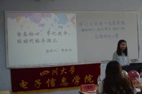 2018年4月22日上午10点至12点,由电子信息学院团委学生会组织举办的“我的初心,我的使命,我的一流”主题演讲比赛在综合楼B座404教室举办。受邀参加本次比赛的评委有电子信息学院团委学生执行副书记盛舒琦,电子信息学院学生会执行主席汤婧鑫,电子信息学院学生会执行副主席吴翘楚,电子信息学院学生会执行副主席兼青志队长王绍岳。