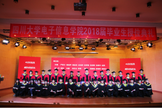 6月15日上午10:00,电子信息学院在best365中国官方网站望江校区文华活动中心203隆重举行电子信息学院2018届本科生毕业暨授位典礼。学院周寿桓院士,学院党委书记邰明松、院长冯国英、学院博士生导师曹益平教授、刘长军教授、张启灿教授、陈星教授、何小海教授、周渊平教授、刘嘉勇教授、李大海教授、陈文静教授、闫丽萍教授、赵翔教授、张蓉竹教授、滕奇志教授、吴炜教授、杨晓庆教授、院党委副书记陈笃海、副院长杨阳副教授、工会主席杨晓敏副教授出席毕业典礼,学院学生科相关老师以及2018届全体本科毕业生、部分毕业生家长参加本次毕业典礼。毕业典礼由学院副院长雷印杰主持。