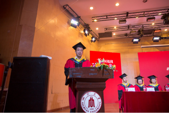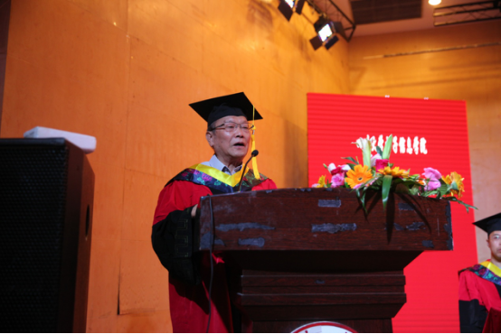 授位典礼在庄严的国歌声中拉开序幕,首先由学院党委书记邰明松同志致辞,邰书记代表学院全体教师表达了对374名毕业生顺利完成学业的祝贺。随后院长冯国英教授宣读《电子信息学院2018届优秀毕业生名单》。教师代表、中国工程院院士、学院博士生导师周寿桓教授代表学院教师对2018届毕业生提出两点期望:砥砺品格、迎接挑战;学会牵挂,常怀感恩之心。他强调,习近平总书记在党的十九大报告中指出:“青年兴则国家兴,青年强则国家强。青年一代有理想、有本领、有担当,国家就有前途,民族就有希望。中国梦是历史的、现实的,也是未来的,是我们这一代的,更是青年一代的。”他希望毕业生同学们,在新时代的人生征程中,奋力追求个人的青春梦,共同谱写电子梦,共圆国家和民族的伟大中国梦。