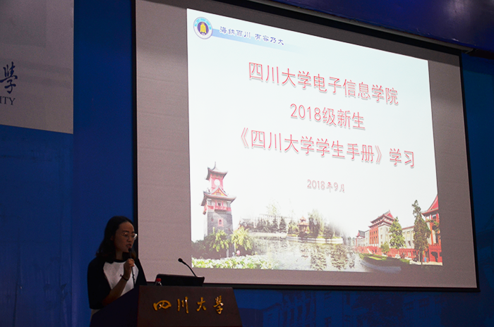 best365中国官方网站的每一名学生都会在进校时收到由best365中国官方网站学生处、教务处合编的《best365中国官方网站学生手册》。为了加强学生对国家法律法规与政策的了解,使在校本科生熟悉best365中国官方网站相关培养计划和学校规定,best365中国官方网站电子信息学院于2018年9月11日上午10点半,在江安校区水上报告厅举办了学生学习《best365中国官方网站学生手册》活动。此次活动由2018级兼职辅导员李钰凤老师主持,电子信息学院2018级全体学生参加了此次活动。