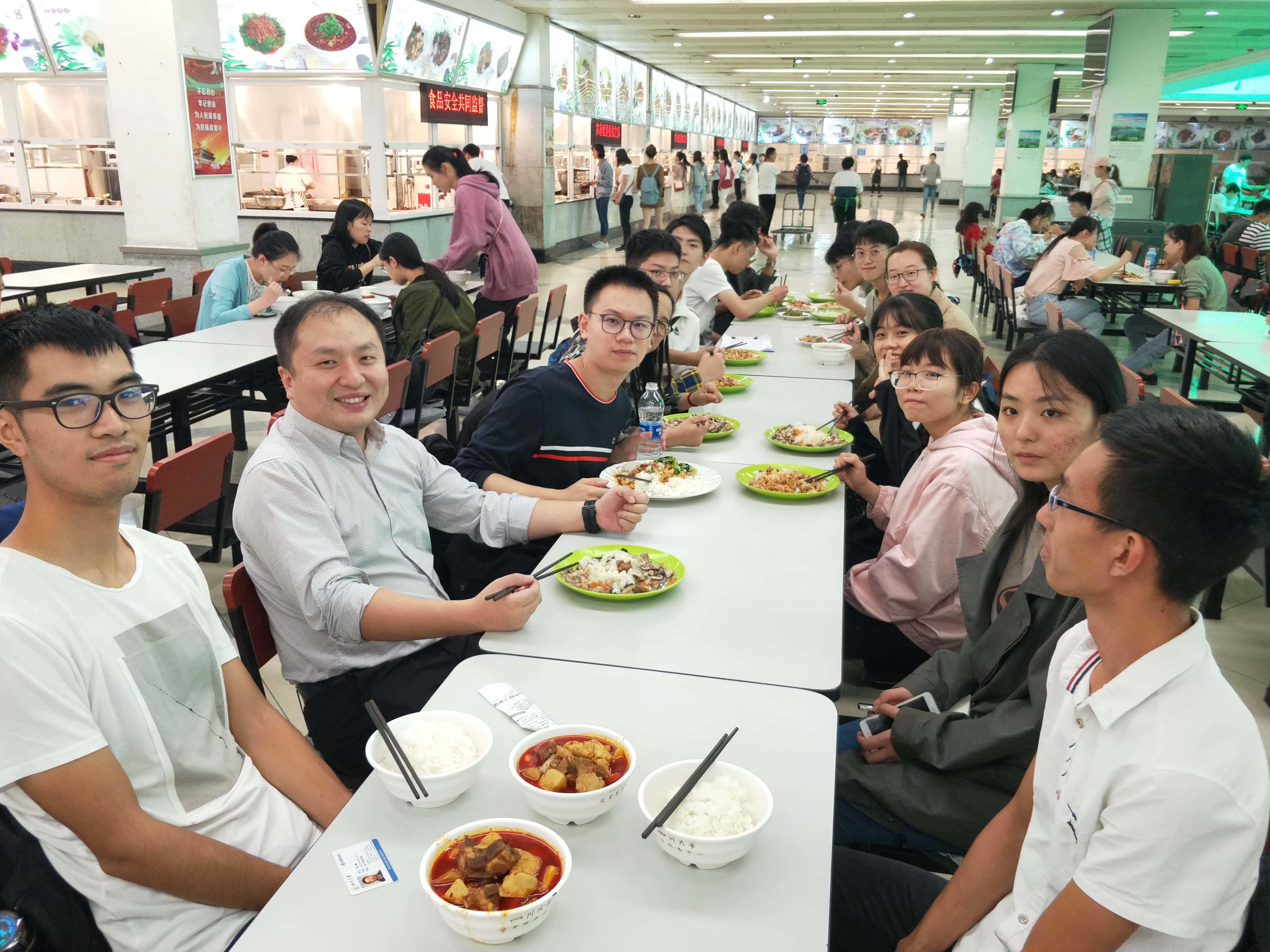 中午时分,大家在一餐二楼集合,一起吃午餐。在吃饭过程中,院长冯国英教授还询问了同学们的学习与生活情况,被问到的同学都认真回应了冯院长。有的同学还把自己在生活中的以及学习上遇到的问题提了出来,向冯院长和雷副院长咨询。面对这些问题,冯院长以及雷副院长都以自己多年的教学经历为依据,给同学们答疑解惑,并且还提出了一些具有针对性的建议,让同学们能够有目标地去解决问题。同学们听了这些建议后,觉得受益良多,纷纷向冯院长和雷副院长表达感激之情,场面十分热闹。而本次的午餐交流会也在欢笑声中落下了帷幕。