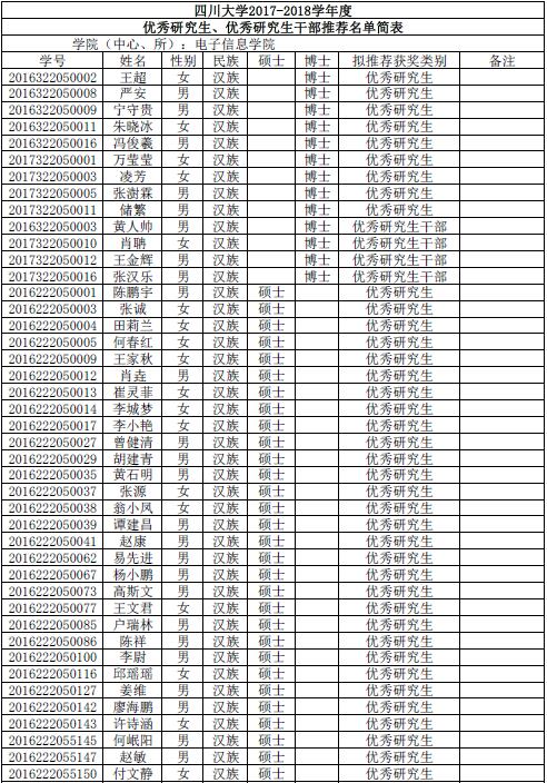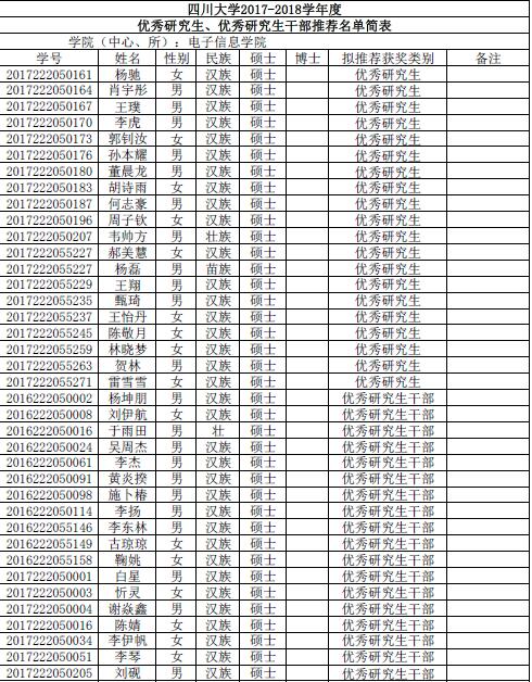 由同学们自愿申请、班级推荐,经过学院评议小组评审。现将获得电子信息学院2017-2018年度优秀研究生优秀研究生干部名单公布如下: