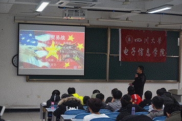 2018年12月14日,电子信息学院学生主题分享活动在江安校区综合楼C206教室和第一教学楼B201教室顺利开展。电子信息学院2018级本科全体学生参加了此次主题分享活动。学生们根据老师上课讲授的知识,通过在网上查找资料、阅读相关书籍等方式,对时下热点时政问题分享了自己的认识与见解。