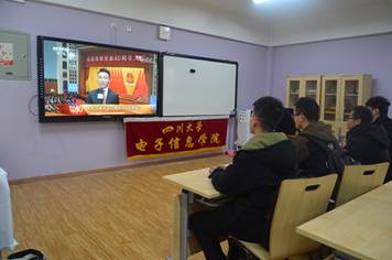 为使同学们更加了解改革开放以来国家的发展情况,明白自己作为当代青年肩负的历史使命,2018年12月18日中午12时30分,电子信息学院组织动员团员青年在江安校区六舍活动室观看了中央庆祝改革开放40周年大会。