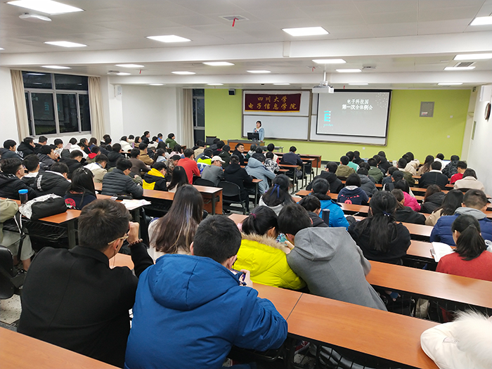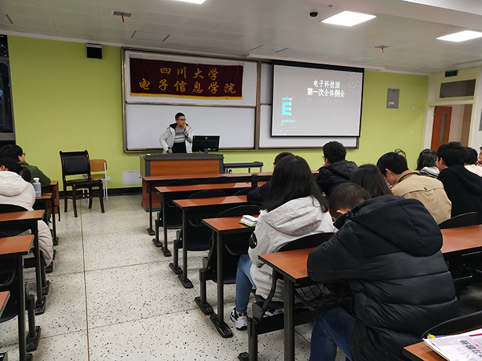 2019年3月2日,由电子科技园模拟电子设计协会第一组、电子科技园模拟电子设计协会第二组、电子科技园嵌入式协会、电子科技园光电设计协会、电子科技园飞思卡尔协会、电子科技园多旋翼飞行器(第一组)、电子科技园多旋翼飞行器(第二组)、电子科技园数字电路设计(第一组)、电子科技园数字电路设计(第二组)主办,电子科技园第一组、电子科技园第二组、电子科技园第三组、电子科技园第四组、电子科技园第五组、电子科技园POV协会第一组、电子科技园POV协会第二组、电子科技园船模协会第一组、电子科技园船模协会第二组、电子科技园电子设计竞赛(第一组)、电子科技园电子设计竞赛(第二组)、电子科技园电子设计竞赛(第三组)、电子科技园电子设计竞赛(第四组)、电子科技园信息安全保密协会、电子科技园信息安全协会(第一组)、电子科技园信息安全协会(第二组)、电磁智能车协会、物联网实践与创新协会、网络技术协会协办的电子科技园第一次例会在best365中国官方网站江安校区第一教学楼B座举行。电子科技园主席团、部长团以及全体干事参加了此次例会。