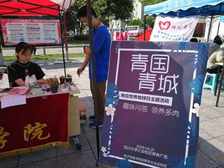 2019年4月21日,为响应4月22日世界地球日,电子信息学院团委学生会宣传部于江安校区青春广场开展了 “青国青城”世界地球日环保主题活动,得到了同学们的热烈响应。