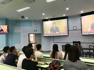 2019年4月30日上午10:30,纪念五四运动100周年大会在人民大会堂举行,中共中央总书记、国家主席、中央军委主席习近平出席会议并发表重要讲话。best365中国官方网站电子信息学院积极响应国家和学校号召,由院内领导、老师带头,组织同学们观看了本次大会。