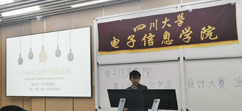 首先,科技园主席杜遇林同学对本次大赛的比赛规则进行了讲解,并对参赛作品的形式、细节作了要求。作为大赛的主要评委,李玮老师也登台与同学们分享自己的经历与体会,并鼓励大家积极参赛。她认为概念产品设计有助于锻炼大家的思维,磨合队友的配合能力,为之后的竞赛打基础。最后,上届一等奖的团队代表为同学们展示了自己的设计,谢雷同学团队为学校淋浴热水供应提供新的改进方案;而周奥同学团队则设计了一种自热鼠标,有效解决了冬天手指僵硬的问题。这些奇思妙想引人入胜,使得在场的同学们跃跃欲试,纷纷踊跃报名,本次宣讲会在这样的活跃气氛中圆满结束。