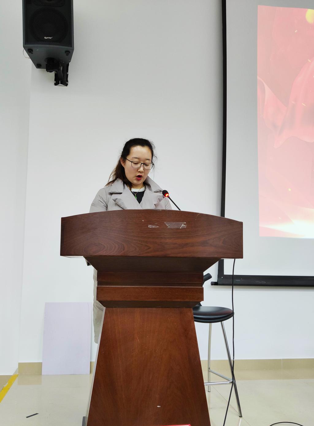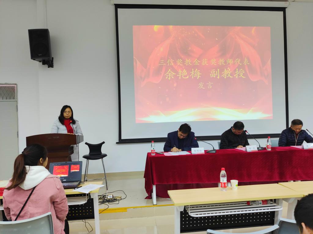 获奖名单宣读完毕后,“三信”奖教金获奖教师代表余艳梅副教授发表获奖感言。余老师首先对学院和领导对自己认可表示感谢,讲诉了作为一名光荣的大学教师,她始终不忘自己教书育人、投身科研的本职工作,并表达了她将继续以身作则、勇攀高峰的坚定态度。最后,余老师衷心祝愿重庆三信电子有限公司可以再接再厉、再创辉煌。然后是2017级本科生李益源同学作为“三信”奖学金获奖学生代表发表获奖感言。李益源同学也首先表达了对学校的感激,感谢老师以及领导们的栽培。她讲诉了自己从一进学校开始,就立志要成为一名敢于拼搏、突破自我极限的人。于是她早早地就进入了实验室,和老师、学长学姐们一起搞科研,发论文,同时还修双学位,所以李益源也成为了同学眼中的“励志”女孩。