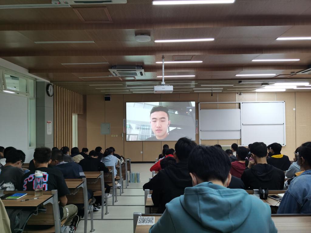 压轴上场的是电子信息学院2020届毕业生郝子祺,选择出国深造的他向有留学意向的同学分享了自己的留学经验。他建议新生要尽量早地拿到语言成绩,注重暑假在国外大学科研,有目标地做比赛。在与他人的合作中,队友能力很重要,但自身的真本事更重要。最后他告诫同学们,要做到不妄自菲薄,也不妄自尊大。