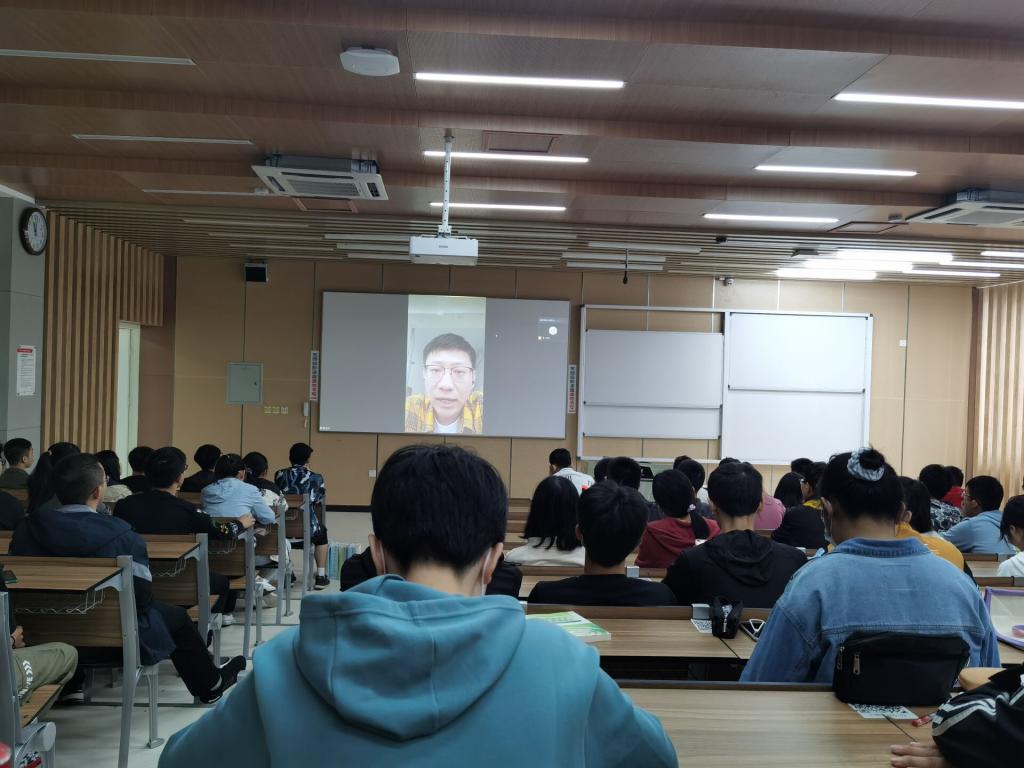 第二位进行分享的是电子信息学院2020届本科毕业生王昱辰,他本科四年均担任班长职位。与上一位毕业生不同,他重点向新生介绍了大学本科学习期间容易踏足的“雷区”,告诫学生要树立明确目标并为之坚持,不忘初心方得始终。