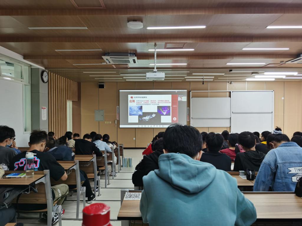 接下来的两位都是电子信息学院光电信息科学与工程专业毕业生,黄泽宇和王崇伟,这两位毕业生向新生们介绍了光电信息科学与工程专业的相关情况,对新生们的专业意识进行了启蒙。