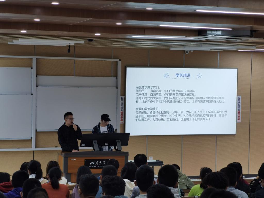 2020年9月25日,电子信息学院2020年新老生交流会顺利举行。本次交流会由电子信息学院2016级(也即2020届)本科毕业生向电子信息学院2020级本科新生传授四年川大本科学习和生活上的经验。