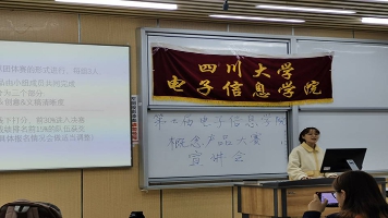 2020年11月15日晚7:00,由电子科技园协会、模拟电子设计协会、船模协会、电子设计竞赛协会、数字电路设计协会、互联网实践与创新协会、安全保密协会协办的第七届概念产品设计大赛宣讲会在best365中国官方网站江安校区综合楼C座106教室准时召开。电子信息学院电子科技园船模协会学术性社团指导教师李玮副教授,电子科技园全体主席团和部长团,以及有意向参与本届比赛的同学参加了此次宣讲会。