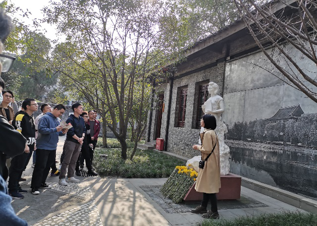 江姐纪念馆位于原川大女生院旧址,是当年江姐居住和生活过的地方。走进纪念馆,映入眼帘的是江姐手捧书本一袭白裙的雕像,以及旁边竖立着的入党誓词。誓词历历在目,江姐就在眼前,同学们对革命英烈的崇敬以及对伟大的党的敬仰之情油然而生。