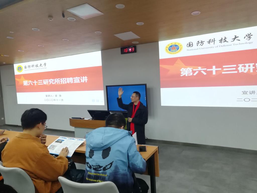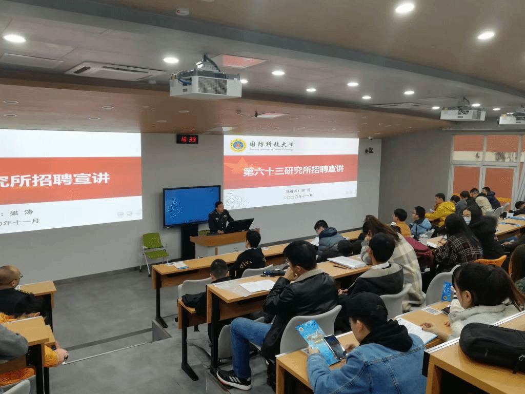 梁涛教授的讲述内容主要包括国防科技大学六十三研究所单位概况、博士后科研工作站简介、文职人员招生政策解读以及工作生活条件等几个方面。梁涛教授先是细致地给大家讲解了所里的研究方向,再结合具体的小方向指明了具体的岗位需求。之后,梁涛教授又着重介绍了福利待遇、相关的申报条件及方式,并表达了六十三所求贤若渴,招贤纳士的殷切希望!