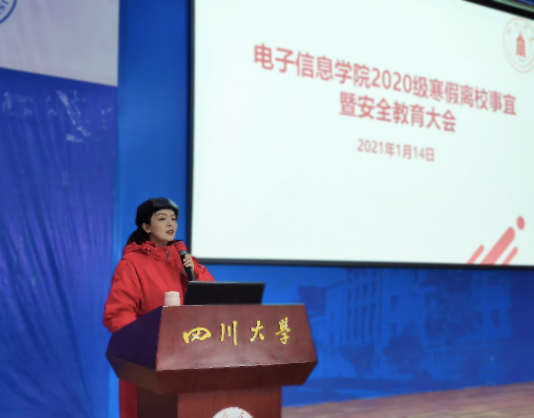 2021年1月14日下午16点30分至17点50分,电子信息学院2020级年级会在水上报告厅开展。本次年级会由2020级辅导员陈晓娟老师主持,全体2020级同学参加了会议。会议上,陈晓娟老师就第一学期进行了总结,并对放假相关事项做出了提醒。