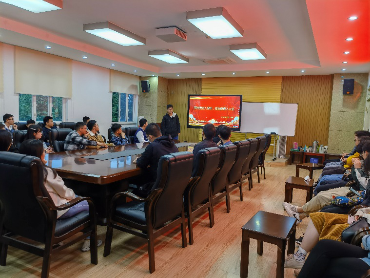 首先,王邺同学强调了学习四史,尤其是党史学习教育活动的重要性与本次主题团日活动的意义。接着,王邺同学以2021年中美高层战略对话为引,以中华民族兴衰史为脉络,向同学们讲述了中华民族灿烂的文化与近代屈辱的历史。再以1949新中国成立为始,介绍了在中国共产党领导下,实现中华民族伟大复兴的历史进程。在无数革命先辈事迹的感召下,同学们都理解了“没有共产党就没有新中国”、“只有共产党才能救人民”的内在含义,明白了学党史国史,就是要不断增强历史意识,锻炼历史思维,培养历史眼光,以历史为借鉴。