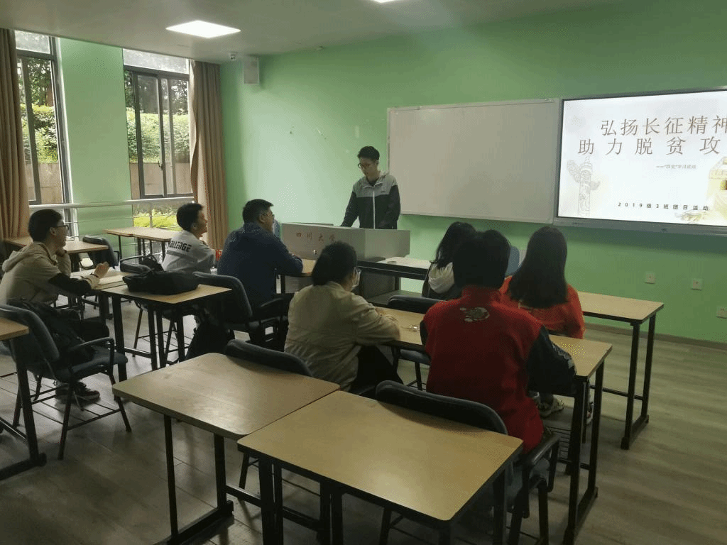 2021年4月18日13;50分,电子信息学院2019级3班团支部“弘扬长征精神,助力扶贫攻坚”主题团日活动在江安校区综合楼B105如期举行。电子信息学院2019级3班全体团员同学积极参与了本次活动。