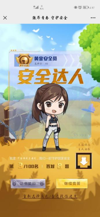 在国家安全日期间,电子信息学院本科生积极参加了线上国家安全知识竞答。同学们以寝室为单位,在相应平台上积极回答有关国家安全的问题。许多同学对国家安全问题都有一定的认识与了解,也在知识竞答当中取得了不错的成绩。在知识竞答这种便捷的知识获取途径当中,许多同学都切实感受到国家安全其实与自己的生活息息相关。