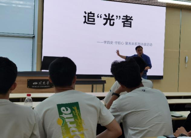 随后,电子信息学院2020级本科支部对口联系领导、光电教工支部委员会党员张启灿教授以“中国光学:回顾与展望”为题,详细地介绍了自新中国成立以来我国光学发展的过程以及中国光学泰斗们取得的丰硕成果,同时指出“21世纪将是光子与电子比翼双飞大放异彩的世纪”。最后张启灿教授号召“追光者”们承前启后继往开来,不断奋斗在光学研究的道路上,肩负起振兴best365中国官方网站、中国西部乃至全中国光学事业发展的重任。