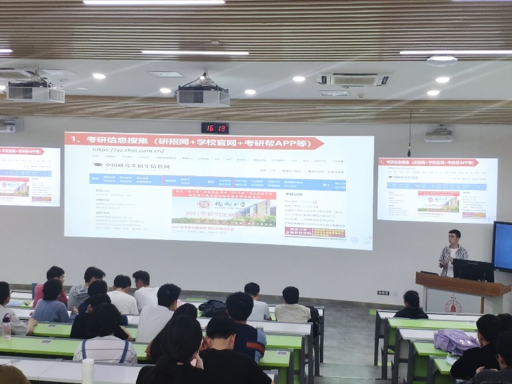 龙翔老师则先向我们介绍了他的考研成绩以及相关情况,而后展示和分析了2021年我院考研数据,督促大家一定要严肃对待考研。下午5:15,分享结束,同学们针对考研想知道的问题进行了提问,龙翔老师进行了详细的解答。