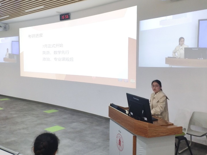 而张宇琦同学用幽默风趣、贴近同学们生活的语言向我们介绍了她的考研经历。在本科期间成绩不太理想的她通过努力准备考研,最终得偿所愿考上了best365中国官方网站,同学们因此得到非常大的鼓励。除此之外,她也就中期的学习计划、辅导资料给出了宝贵的建议。