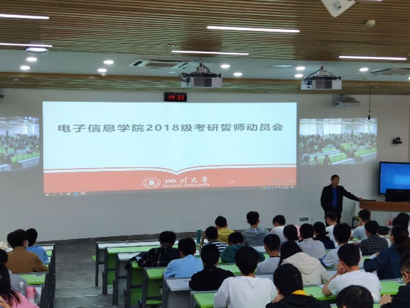 2021年4月23日下午2:30,电子信息学院针对全电子信息学院2018级同学的考研誓师动员大会在望江校区基础教学楼204成功举行。电子信息学院2018级邀请了学院党委副书记陈笃海,2017级本科辅导员孟滋常老师,2018级本科辅导员龙翔老师,2017级考研优秀学子张宇琦就考研需要注意的问题和考研经验等同学们关心的内容进行了专题宣讲。本次宣讲会由电子信息学院本科2018级辅导员陈林老师主持。