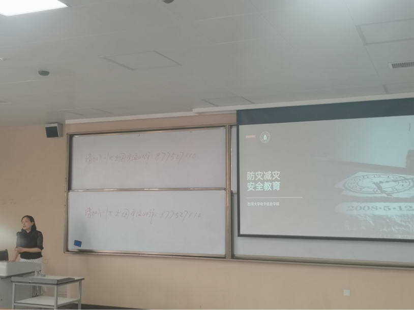 为纪念2008年汶川地震13周年、加强同学们的防灾能力,2021年5月14日,电子信息学院组织2020级本科全体同学于江安校区第一教学楼B座501举办了防震减灾安全宣讲会。本次活动由电子信息学院2020级辅导员陈晓娟老师主持,面向2020级本科生普及防灾减灾知识。