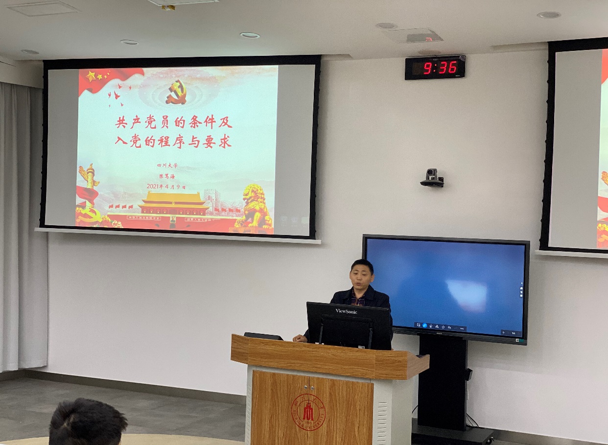 谈到共产党员的条件,陈书记从学习,政治,组织纪律方面对同学们提出了要求,希望同学们同时要有诚心和行动,起到模范带头作用。他强调,当今时代入党应特别解决好对党的信念问题,也要具备相关的理论知识。陈书记的讲授深入浅出,形象生动,现场的同学们纷纷表示赞同并认真做了笔记。
