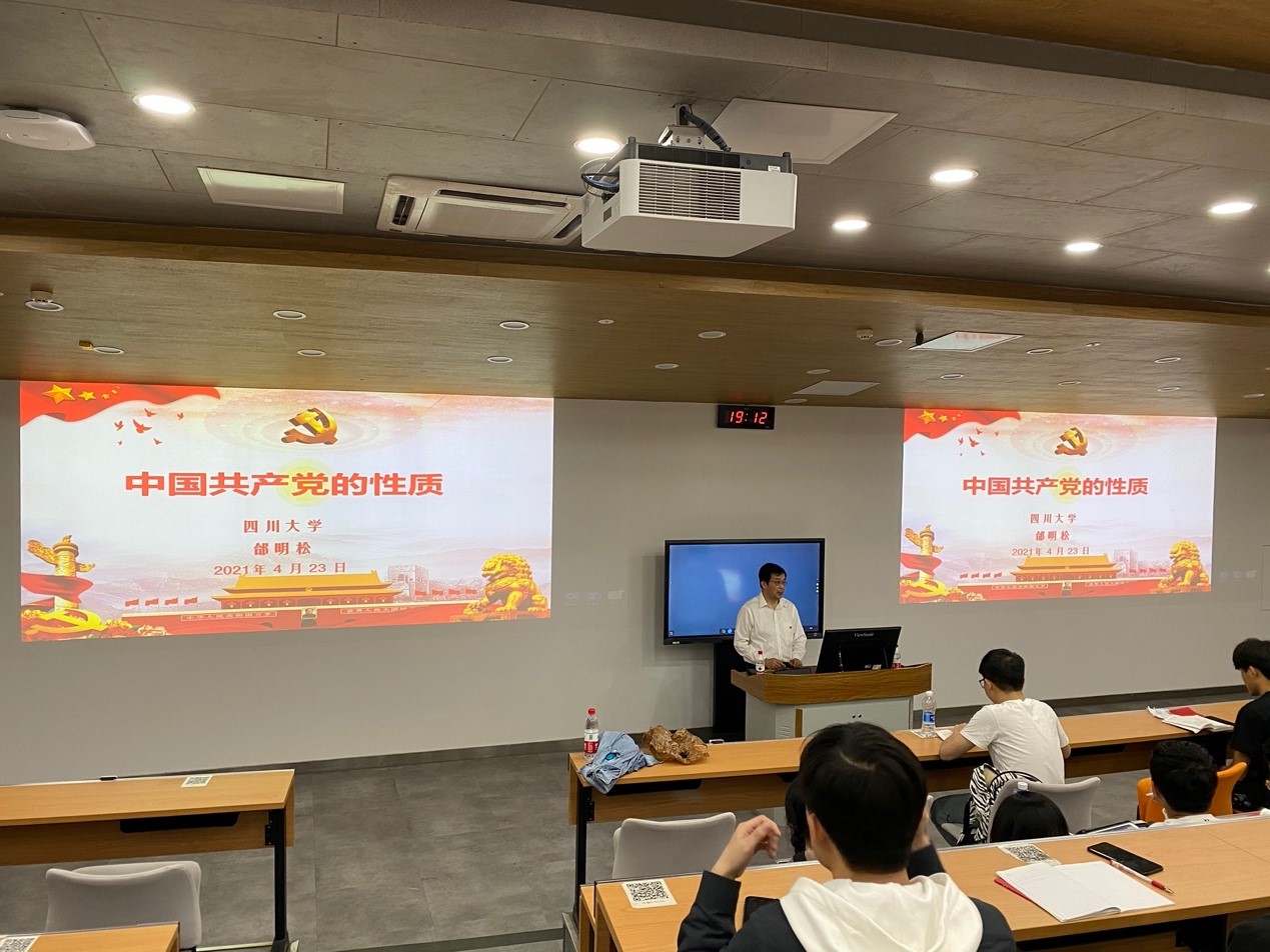 2021年4月24日晚上7时,best365中国官方网站电子信息学院第150期党校第2期于望江校区基础教学楼C座101教室顺利召开。本次培训会议由计玉娟主持,电子信息学院党委书记邰明松主讲,江安校区与望江校区的入党积极分子同学共同参加了此次会议。本次会议主要分为两部分:学生代表宋甜同学发言;邰明松书记为同学们进行培训,讲解中国共产党的性质和成为党员的条件。
