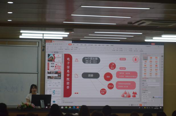 例会开始时,首先由学生会执行副主席王柯程和学生团委副书记何雨主持开场。之后,由每个部门的代表依次上台进行工作总结。团学十个部门分别从部门承办的活动以及在各个活动中所承担的任务、在团学内的作用、部门内部的管理建设和部门团建活动等方面作出了总结。在各部门总结的过程中,汇报人纷纷说到,这一年的团学生活让自己学到了许多技能,结识了很多志同道合的朋友,也在部门内感受到了许多的温暖,比如为部员过生日。同时团学的工作也提高了自己各方面的能力,如人际交往能力。在各个部门总结结束后,电子信息学院团委朱婧老师对本学年的团学工作做了一个总结。朱婧老师首先对在这一年内所有辛苦付出的同学们表示了感谢。她指出这一年团学工作能圆满结束,离不开大家共同的付出,在大家的努力下,团学发展得越来越好。最后她衷心地祝福团学能够在将来变得更好,也祝愿团学内辛苦付出的全体同学前程似锦,今后的学习更上一层楼,生活也更加美好。在例会的最后,团学大家庭给每一位成员都送出了精心准备的小礼物,再一次让大家感受到了团学大家庭的温暖。
