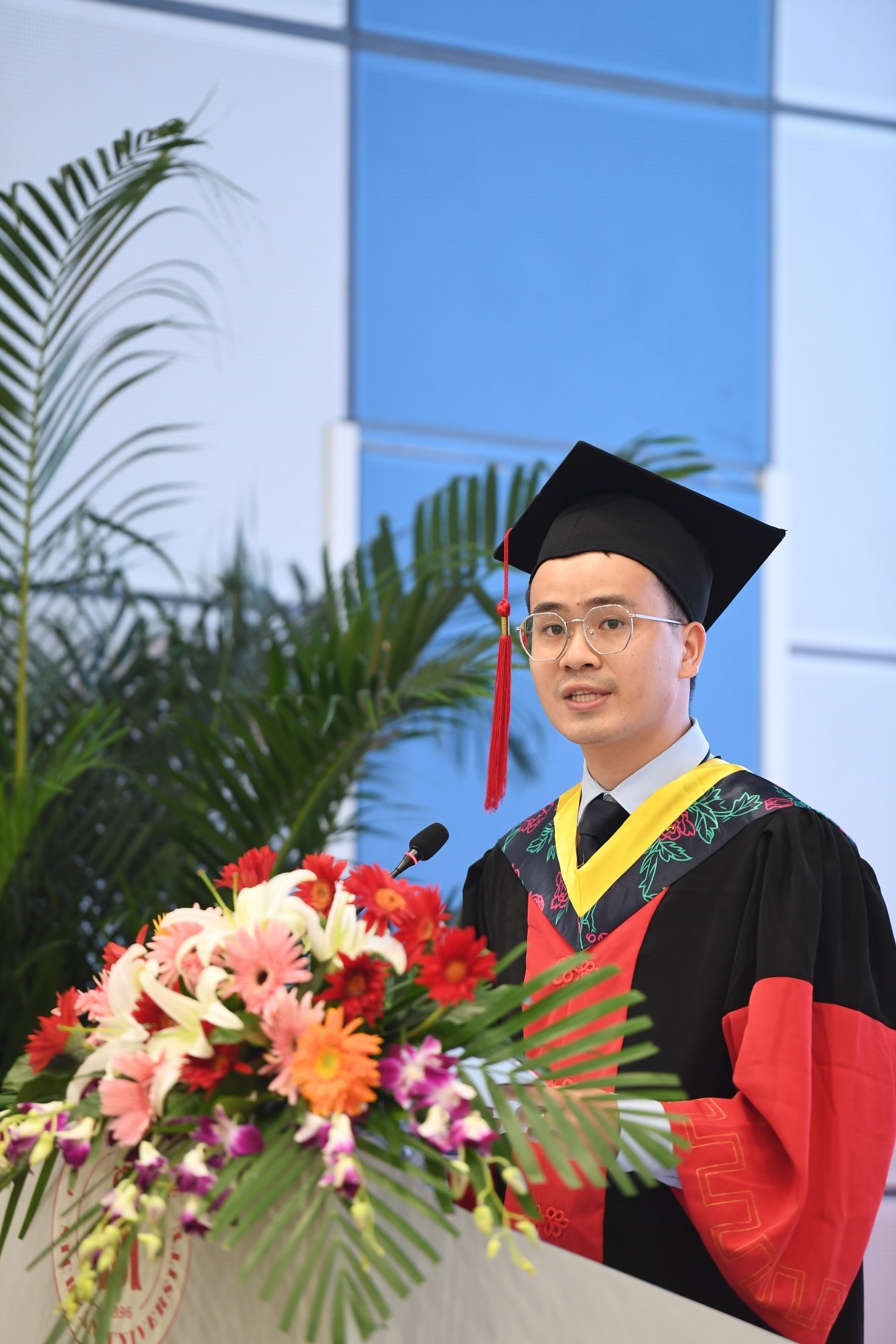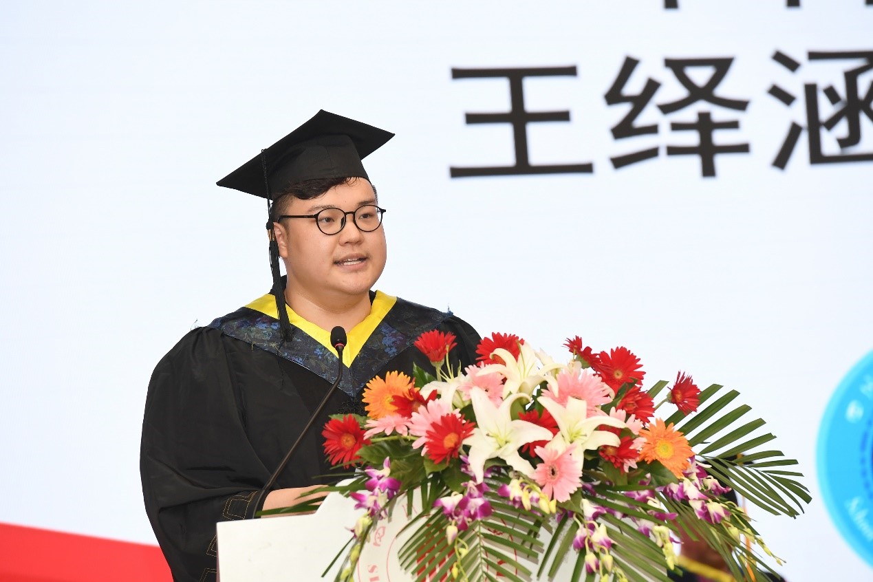 博士毕业生吴周杰同学作为研究生代表发言,他回顾了在川大9年的本硕博学习生涯,从开始对科研的恐惧到最后的喜欢,在科研中“做一名追光者,且不忘生活的浪漫”,短暂而又充实。最后,他祝愿学院蓬勃发展、再创辉煌。