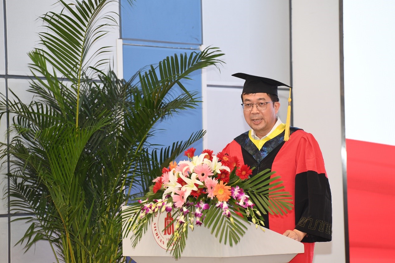 “历史只会眷顾坚定的奋斗者”,院长冯国英教授致辞并宣布毕业名单,代表全院老师向毕业生表示祝贺,深切地表达了对毕业生离校的不舍之情,她希望同学们“做一个有情怀的人,对国家和民族怀有强烈的责任感、使命感;常备一颗感恩的心,感恩身边所有的人。”