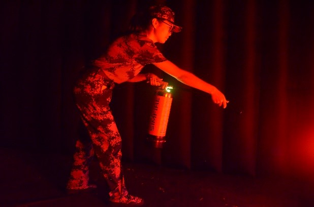 演练开始前,电子信息学院的同学们排着整齐的方队齐步走向体育馆,矫健的步伐展现出电子信息学院同学们饱满的精神状态。到达体育馆后同学们以连队为单位分批次参与演练。首先进行的应急逃生演练,同学们捂住口鼻,依次进入没有光照,烟雾弥漫的模拟室中。在回环的室道内,同学们紧贴墙壁,降低重心,随着应急逃生指示灯的指引,顺利完成了演练。而后进行的是模拟灭火演练,专业人员向同学们详细地讲解灭火器的使用方法与灭火要领,随后同学们按列依次进入消防演练屋内,按部就班,对准火焰根部,成功将火扑灭。最后同学们在教官的带领下有序依次退场。