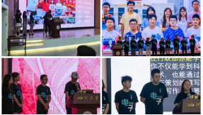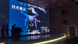 晚上七点十分,宣讲会正式开始。首先, 主持人播放了一段由电子科技园宣传部制作的招新宣传片,激情的背景音乐和精彩的视频内容瞬间让现场的气氛活跃了起来。视频结束,电子科技园主席团上台,他们就科技园的特色和优势进行了精彩的演讲,赢得了现场同学们热烈的掌声。随后按照行政部、外联部、宣传部、技术部的顺序,各部门全体部长上台进行了各具特色的自我介绍并对各自部门的特色和工作进行了详细的介绍。技术部介绍结束后,背景音乐响起,光立方、无人机、全息投影等各种由科技园技术部制作的科技产品登台展示,瞬间引爆全场,赢得了同学们的热烈掌声。在活跃的氛围下,电子科技园2021年迎新宣讲会圆满结束。