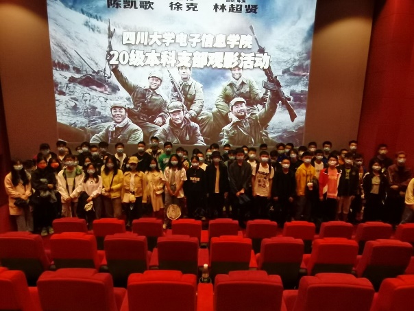 2021年10月5日,为引导学生学习“四史”,缅怀革命先烈,同时丰富学生课余生活,电子信息学院党支部组织2020级的同学观看影片《长津湖》。电子信息学院2020级辅导员陈晓娟老师参与组织了本次观影活动。