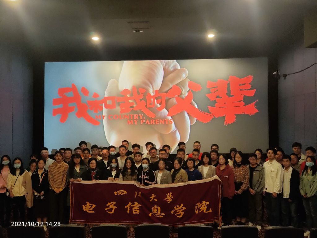为庆祝中华人民共和国成立72周年,在学生党员中持续推进“四史”学习教育,引导青年党员们学习先辈崇高精神,厚植爱国情怀,争做又红又专时代新人,电子信息学院2019级、2020级研究生党支部和2018本科生党支部于2021年10月12日下午开展了《我和我的父辈》观影主题党日活动。电子信息学院2020级研究生党支部书记何惠老师,2018级本科党支部书记陈林老师,2019级研究生党支部书记何阳老师参与组织本次观影活动。