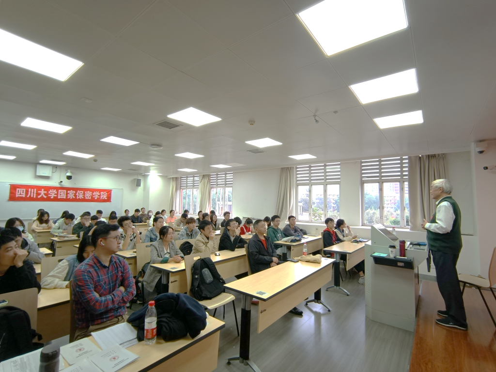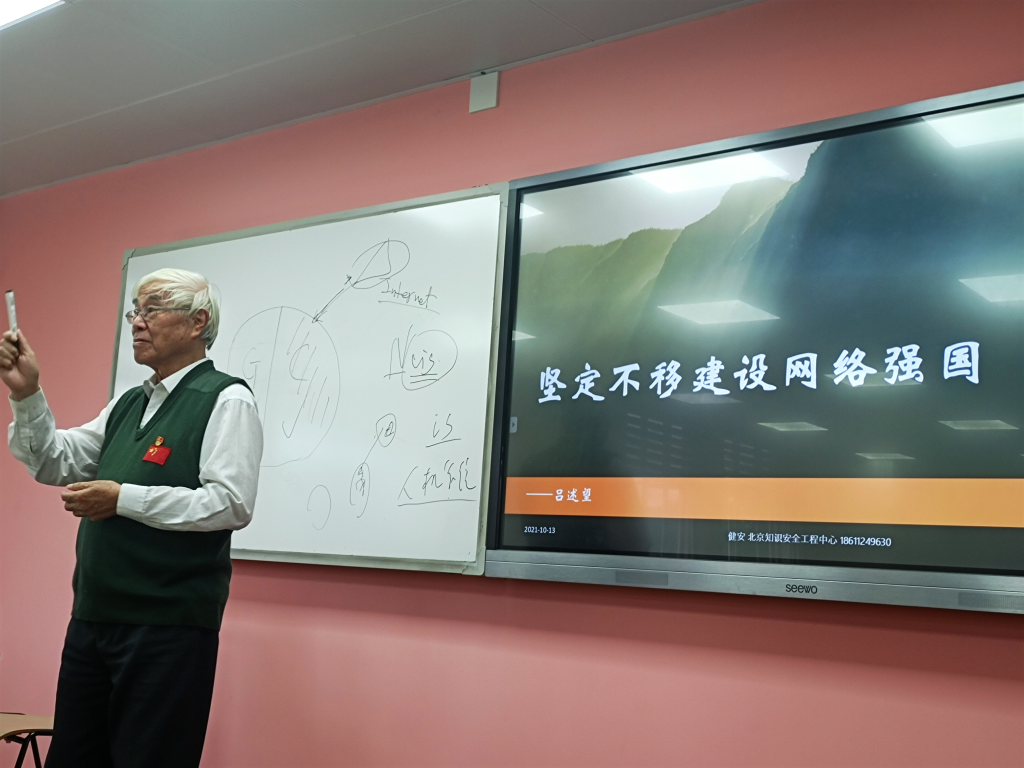 首先,吕述望教授先以“中国有无互联网”为引子,向同学们阐述了网络安全的极端重要性,没有网络安全,就没有国家安全,并提出“讲网络空间安全,就得一讲主权,二讲不受制于人”这一重要论断。