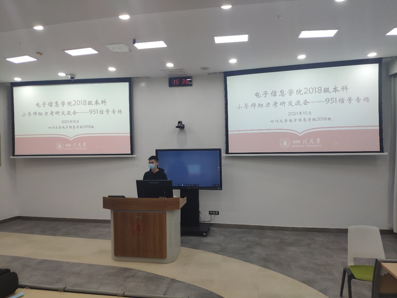 为使同学们能够更好的了解考研最新动态、掌握考研资讯,2021年10月21日下午3点30分,一月一度的电子信息学院考研分享会系列活动如期在基础教学楼C座203顺利举行。电子信息学院2018级辅导员陈林老师、2018级兼职辅导员龙翔老师、考研小导师张林志学长、陈忠照学长以及参加2022届考研的部分2018级考生参加了本次活动。分享会由龙翔主持,活动主要围绕小导师分享个人考研经验、专业课的重点难点划分与讲解、小导师就当下阶段的复习建议展开。