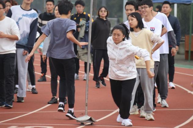 其中,迎面接力项目不仅展现了同学们之间团结协作的默契,还彰显出了电子信息学生顽强拼搏的风貌。比赛初期,电子信息学院的同学们落后于同组内其他学院的同学,甚至出现失误的情况,可是同学们没有受到影响,只管全力以赴,最终反超一名,很多现场观众都被电子学生迎难而上的精神所感染。