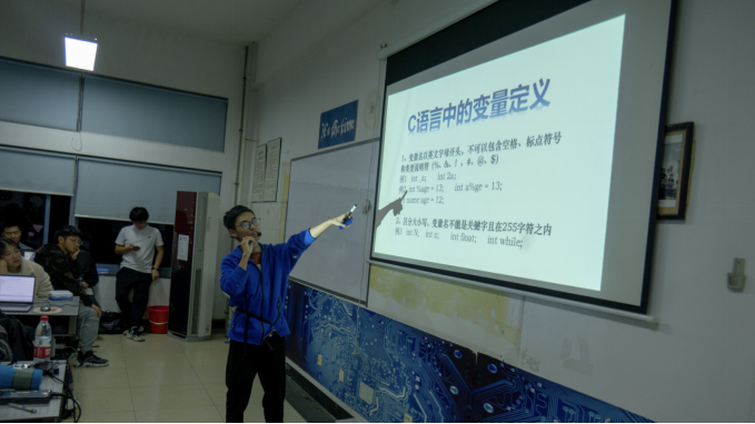 技术部干部曹子健同学在讲解C语言知识