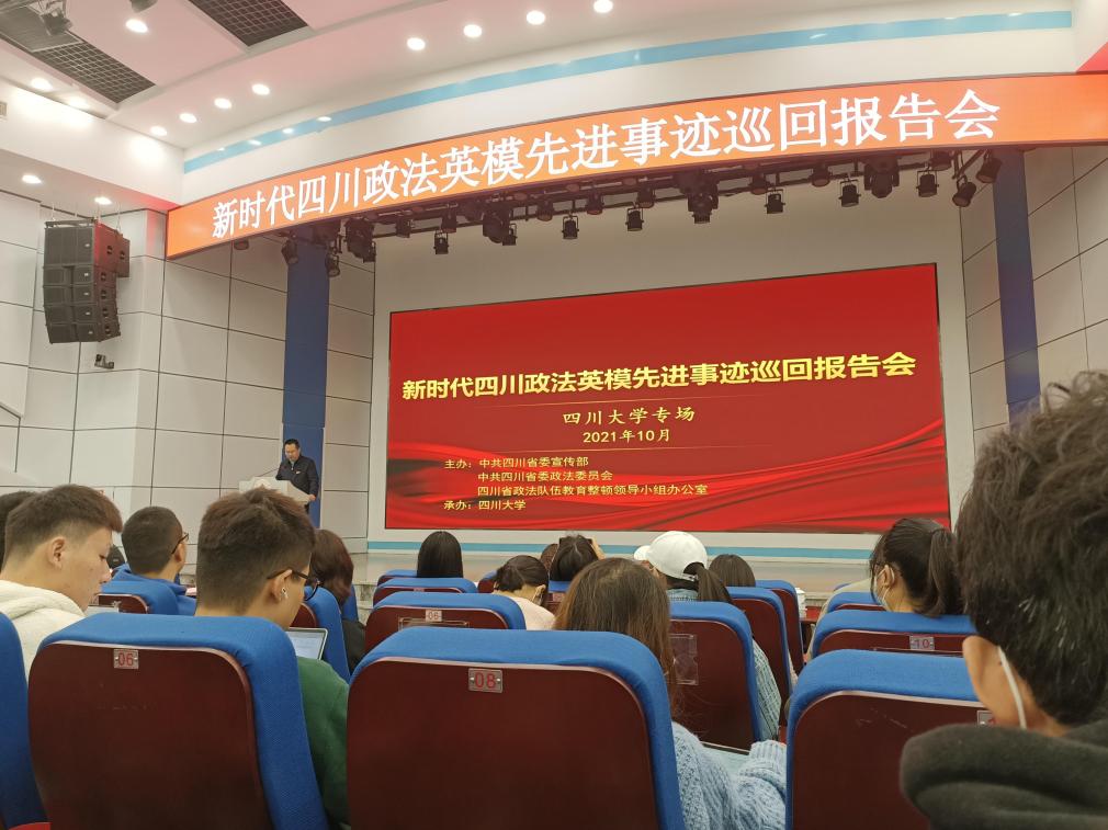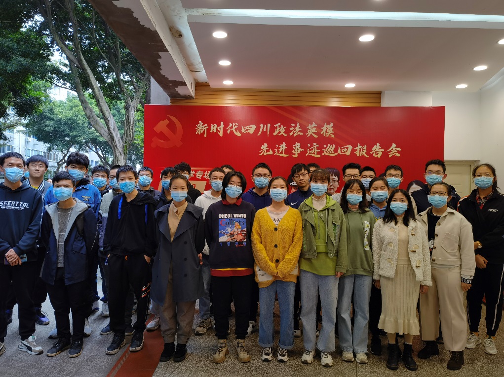 2021年10月21日,由中共四川省委宣传部、中共四川省委政法委员会和四川省政法队伍教育整顿领导小组办公室主办的新时代四川政法英模先进事迹巡回报告会在best365中国官方网站望江校区举行。电子信息学院2019级本科党支部的入党积极分子和卓越工程师班部分同学在2019级辅导员吴秀玲、兼职辅导员白星带领下积极参加报告会。